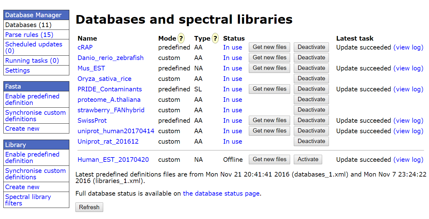 Mascot Configuration的Database Manager具有智能化的数据库文件扫描功能,方便的批量导入来源于各大蛋白质数据库的fasta或MSP文件,同时能够在线自动更新数据库,省却更新烦恼。而向导式数据库构建模块能够快捷地新建各种自定义数据库,包括能够由用户数据进行自建数据库。