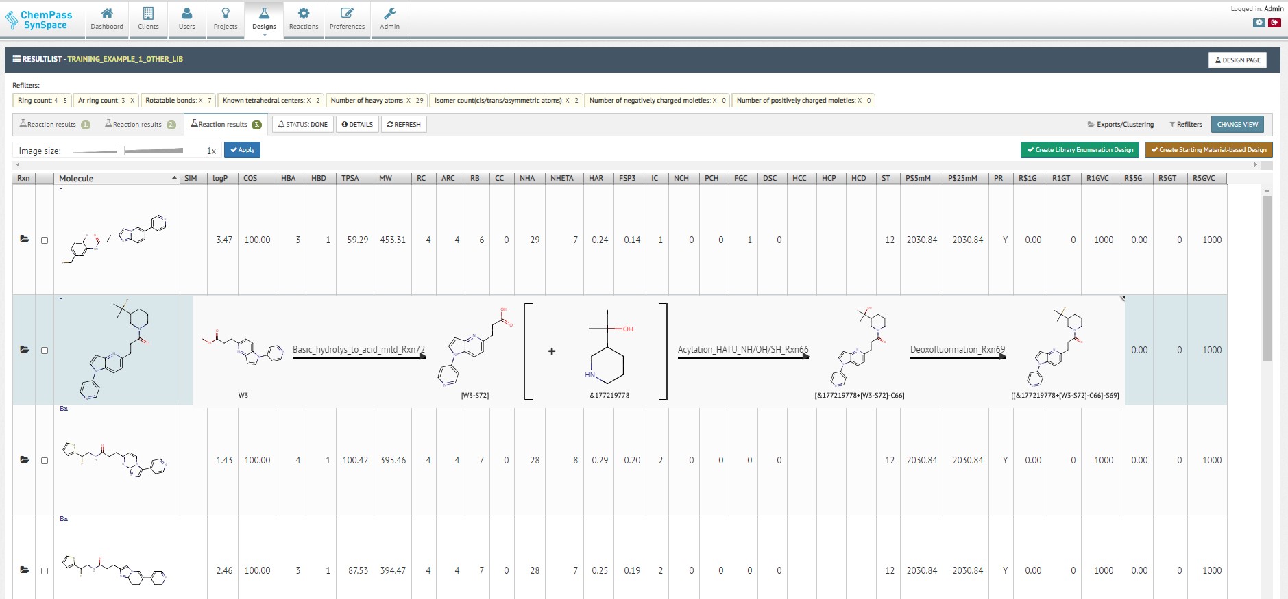 Library design采用了高效的基于反应的枚举方法。进行Library design时,可以根据自定义的反应物库,使用多步、多个化学反应的枚举模块进行复杂的化合物库枚举设计,能够快速高质量生成大批量化学可合成性候选化合物。